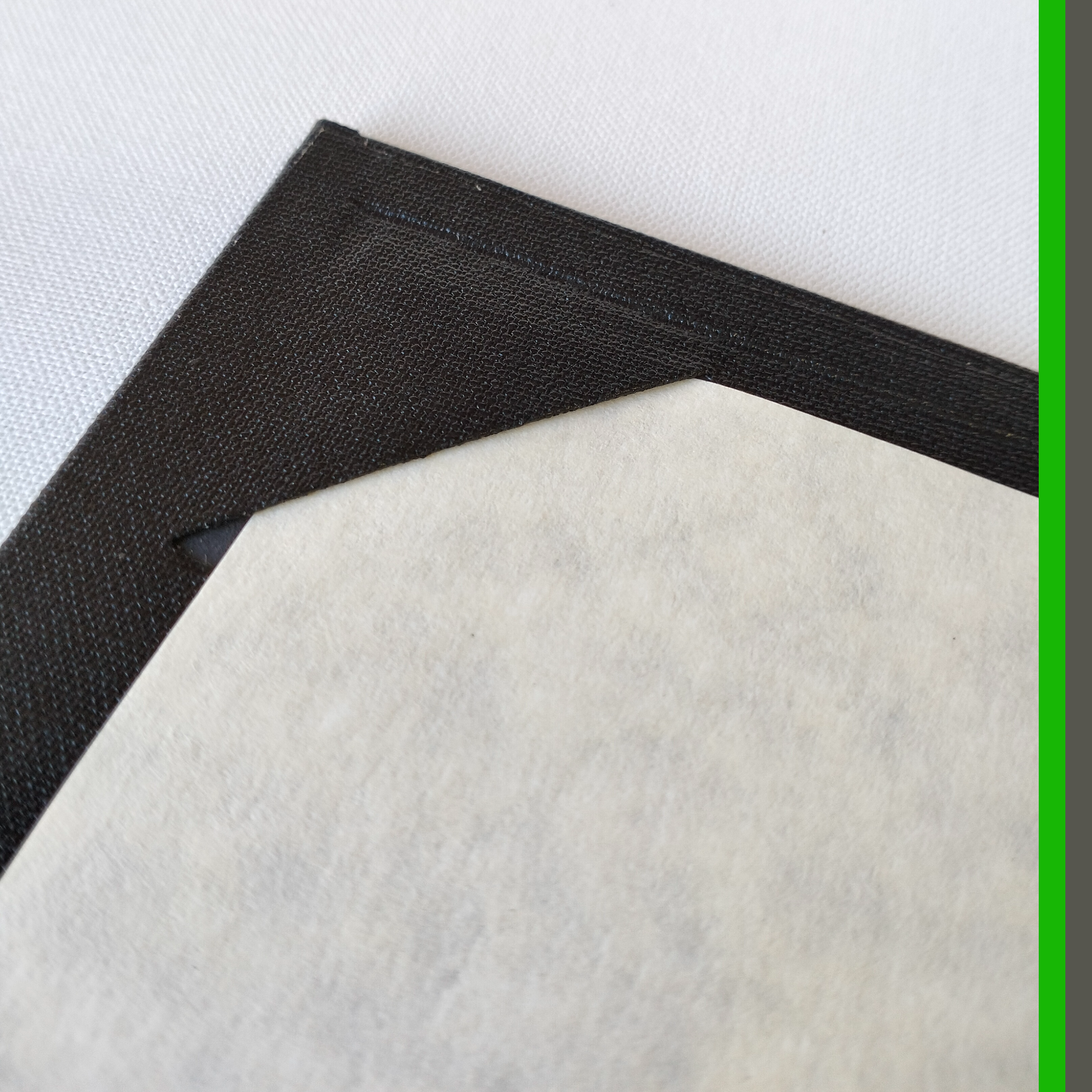 - Buckram (premium library book cloth) on the outer surface, in your choice of color; some non-standard colors are nearly always on hand; please enquire if needing additional choice.